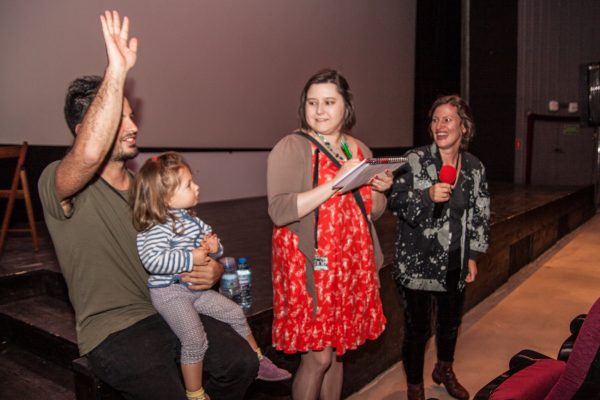 W sobotę oprócz licznych festiwalowych projekcji odbył się warsztat „Przestrzeń w ciele, ciało w przestrzeni” improwizacji i świadomości ciała – spotkanie poświęcone praktykowaniu uważności i obecności poprzez pracę z percepcją i zmysłami.